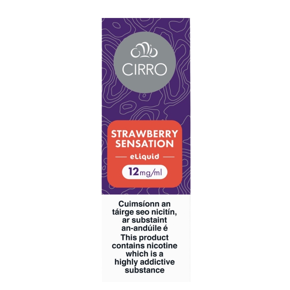 Cirro Strawberry Sensation 12mg E-liquid provides a sweet and subtly tart cherry flavour in every vape puff, ideal for fruit enthusiasts seeking a daily vaping treat. Promises refreshing coolness and satisfaction with every puff.