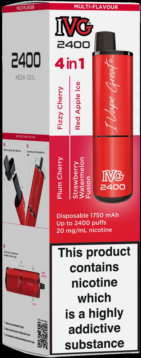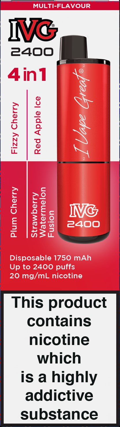 IVG 2400 Red Multi-Pack has 4 different delicious flavours in 1 Disposable! Each pod provides a unique and refreshing taste experience, perfect for those who enjoy a mix of fresh cherry and apple flavours.
