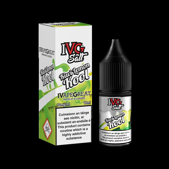 IVG Kiwi Lemon Kool 10mg Nic Salt e-liquid features a tropical, tart taste with fresh kiwi mixed with zesty lemon for a tantalizing blend of sweet and sour flavours, followed by a cooling sensation on the exhale.