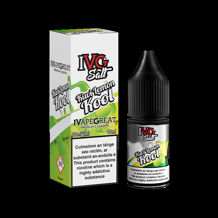 IVG Kiwi Lemon Kool 20mg Nic Salt e-liquid features a tropical, tart taste with fresh kiwi mixed with zesty lemon for a tantalizing blend of sweet and sour flavours, followed by a cooling sensation on the exhale.