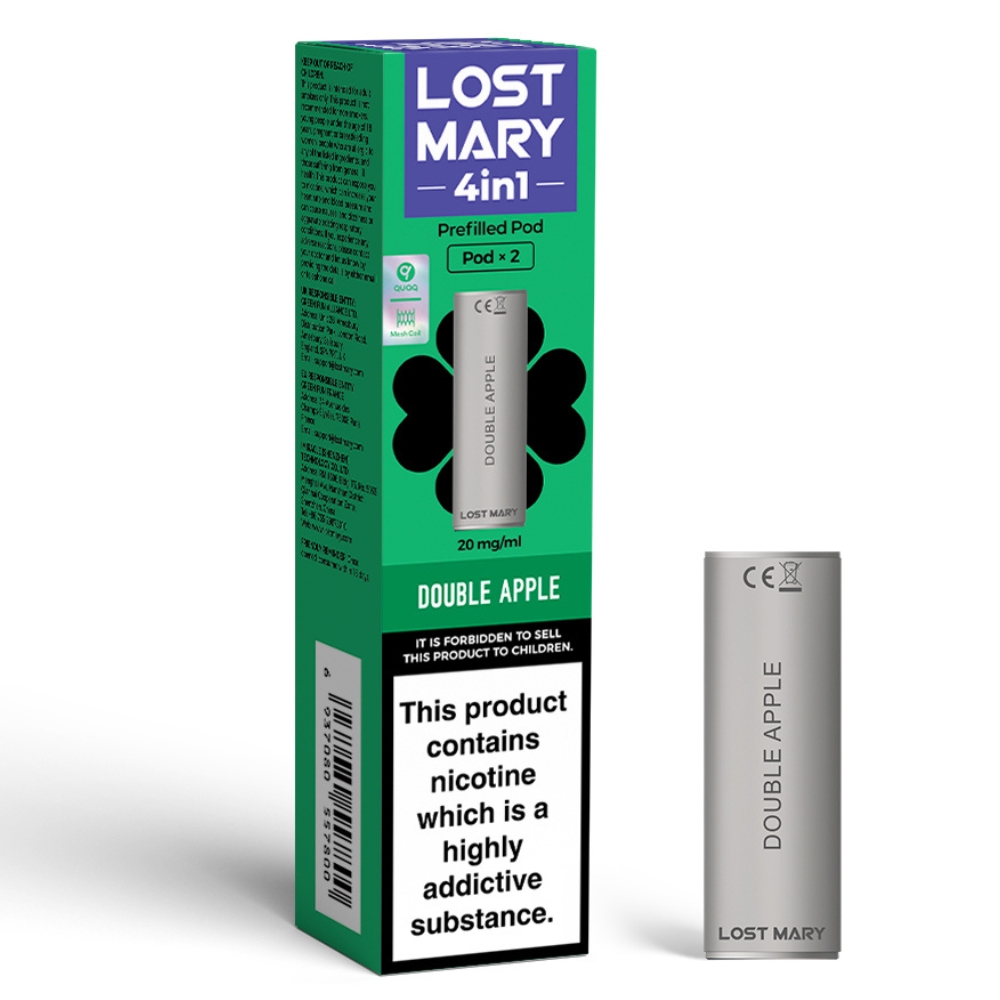 The Lost Mary 4 in 1 Prefilled Pod in Double Apple flavour offers up to 1200 puffs of fruity satisfaction.