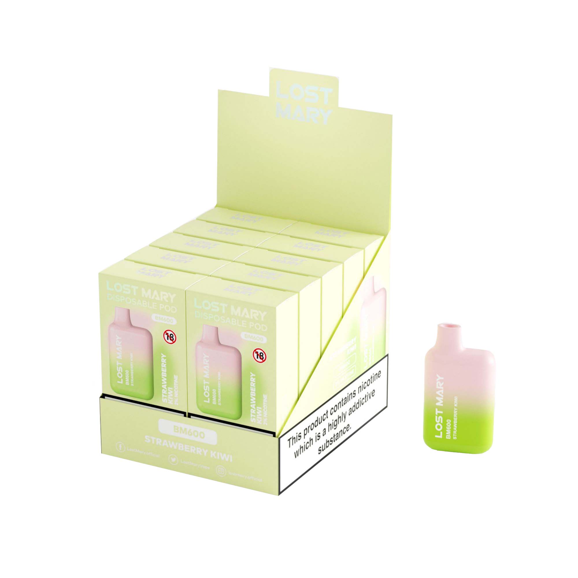 Lost Mary BM600 Strawberry Kiwi offers a delightful blend of sweet, juicy strawberries and exotic kiwi, delivering a tropical twist that's both refreshing and satisfying.